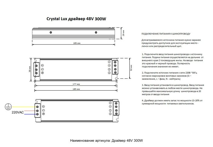 Драйвер 48V Crystal Lux драйвер 48V 300W