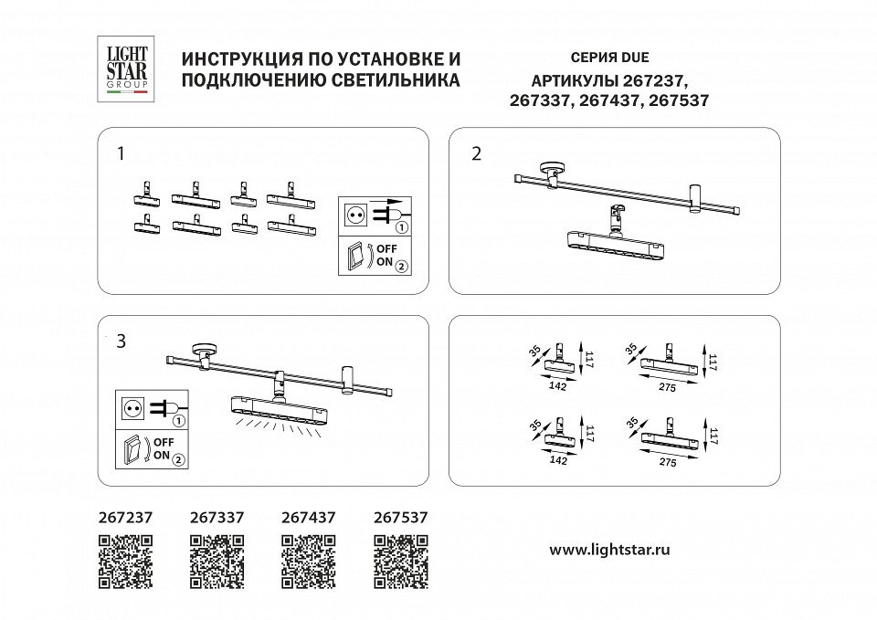 Станьте первым, кто оставит отзыв о товаре Трековый светильник Lightstar DUE 267437.