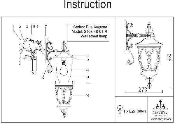 Настенный фонарь Maytoni уличный Rua Augusta S103-48-01-R