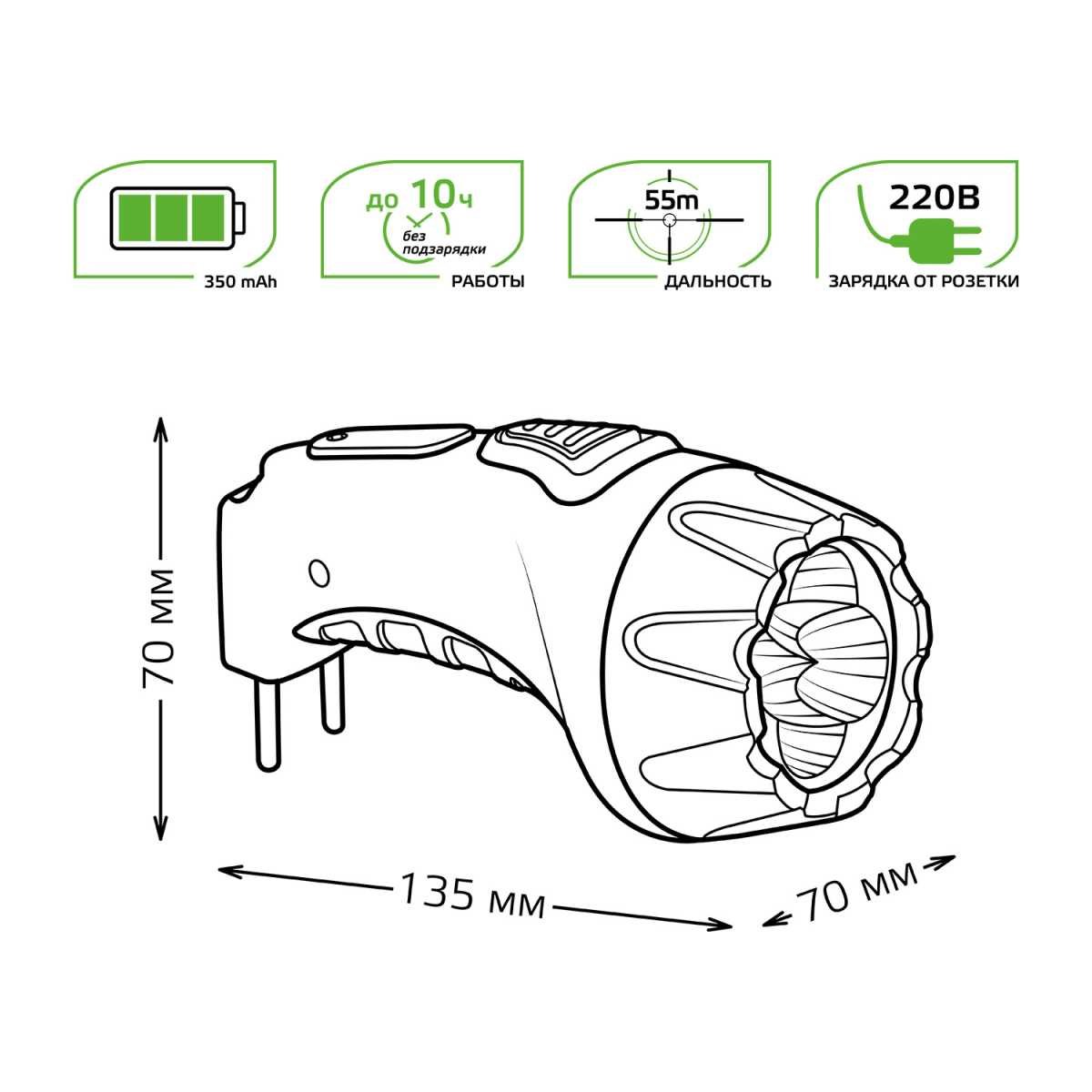 Главная Уличные светильники Ручной светодиодный фонарь Gauss аккумуляторный 135х70 40 лм GF104