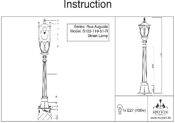 Станьте первым, кто оставит отзыв о товаре Наземный фонарь Maytoni Rua Augusta S103-119-51-R.