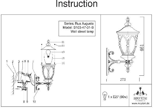 Станьте первым, кто оставит отзыв о товаре Настенный фонарь Maytoni уличный Rua Augusta S103-47-01-B.
