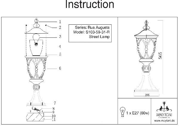 Станьте первым, кто оставит отзыв о товаре Уличный столб Maytoni Rua Augusta S103-59-31-R.