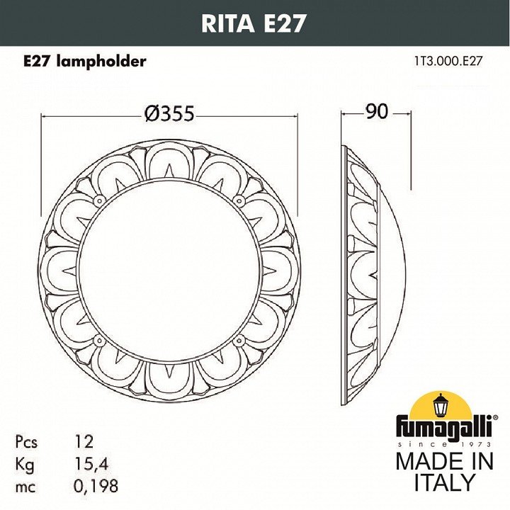 Настенный светильник уличный Fumagalli Rita 1T3.000.000.WYE27