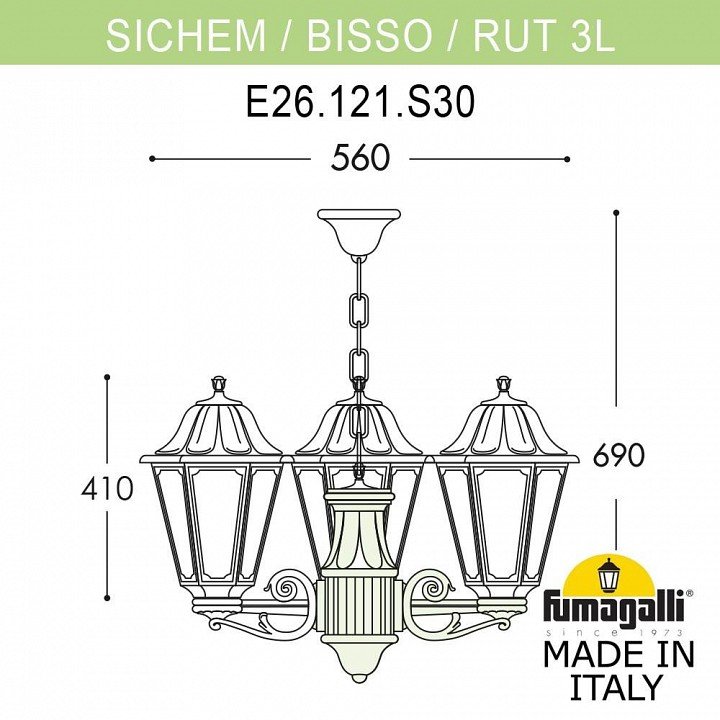 Главная Уличные светильники Уличный светильник подвесной Fumagalli RUT E26.120.S30.AXF1R