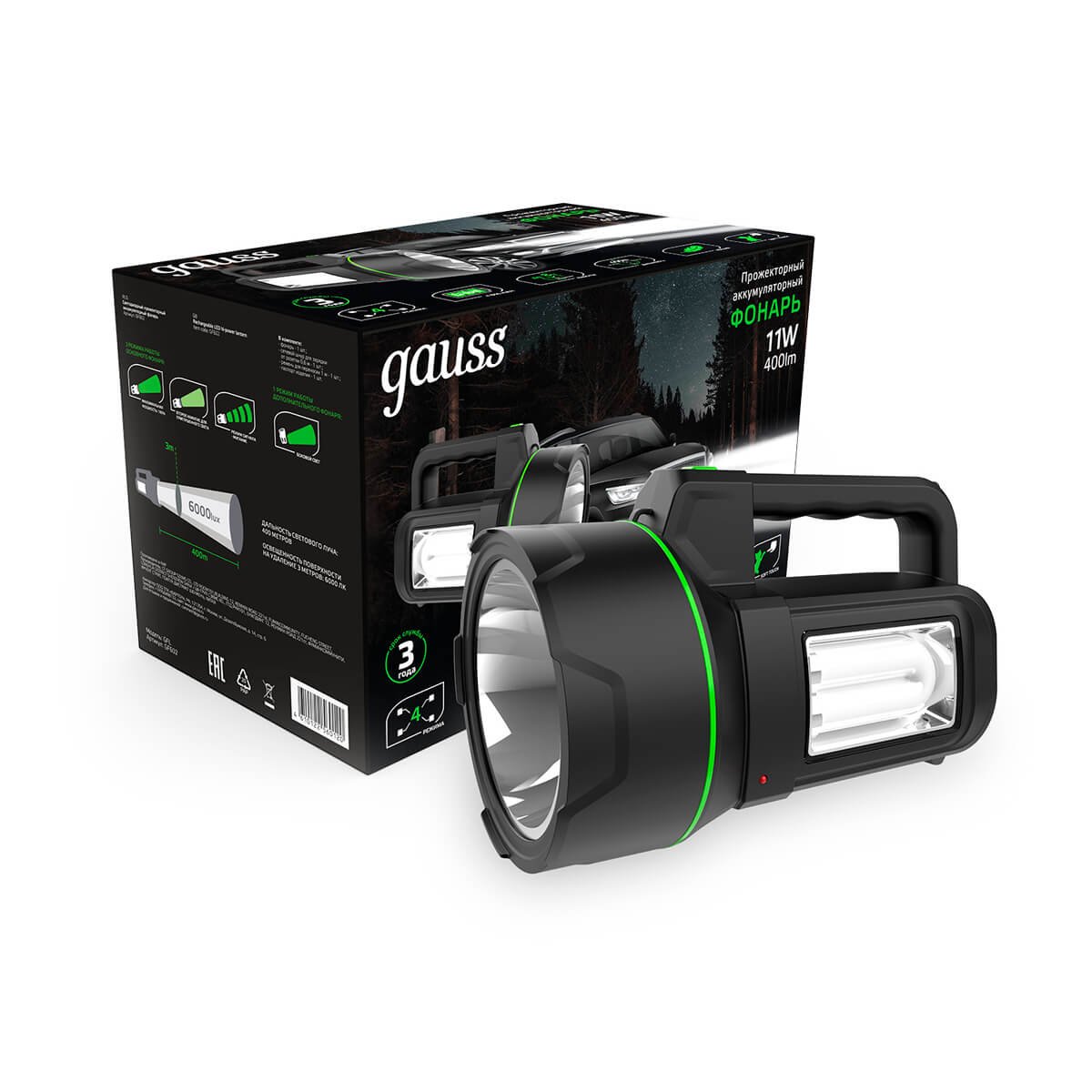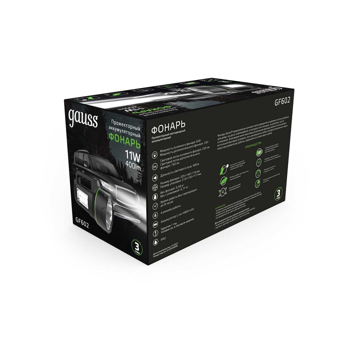 Станьте первым, кто оставит отзыв о товаре Прожекторный светодиодный фонарь Gauss аккумуляторный 205х140 400 лм GF602.